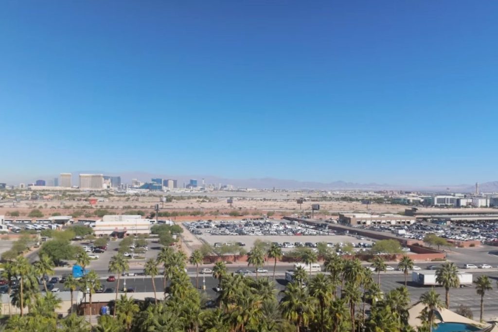 During the day, you’ll occasionally hear a low rumble when planes take off. It’s noticeable for a few seconds, but not overwhelming. With the windows closed (which they typically are in Vegas anyway because of the heat), the noise is minimal.
